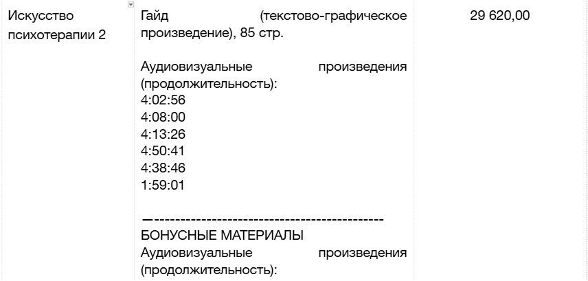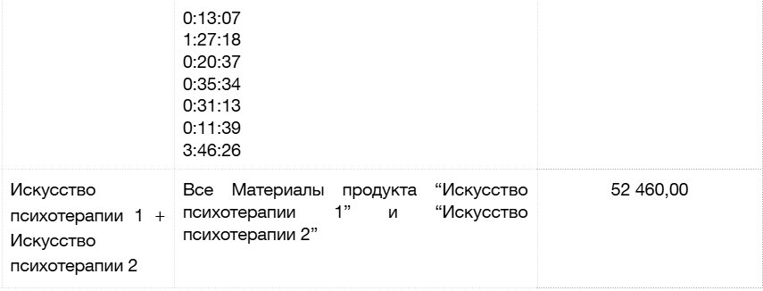 1. Для Лицензий “Искусство психотерапии 1” и “Искусство психотерапии 2” – двумя равными платежами, первый в момент заключения Договора, второй до истечения 1 месяца с момента первого платежа.