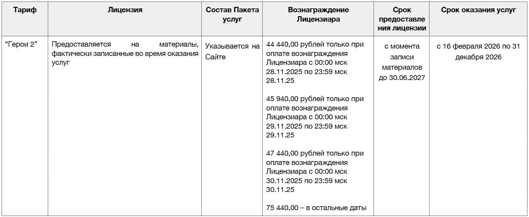 2.1. Оплата вознаграждения Лицензиара по тарифу “Герои 2” возможна одним из следующих способов”: