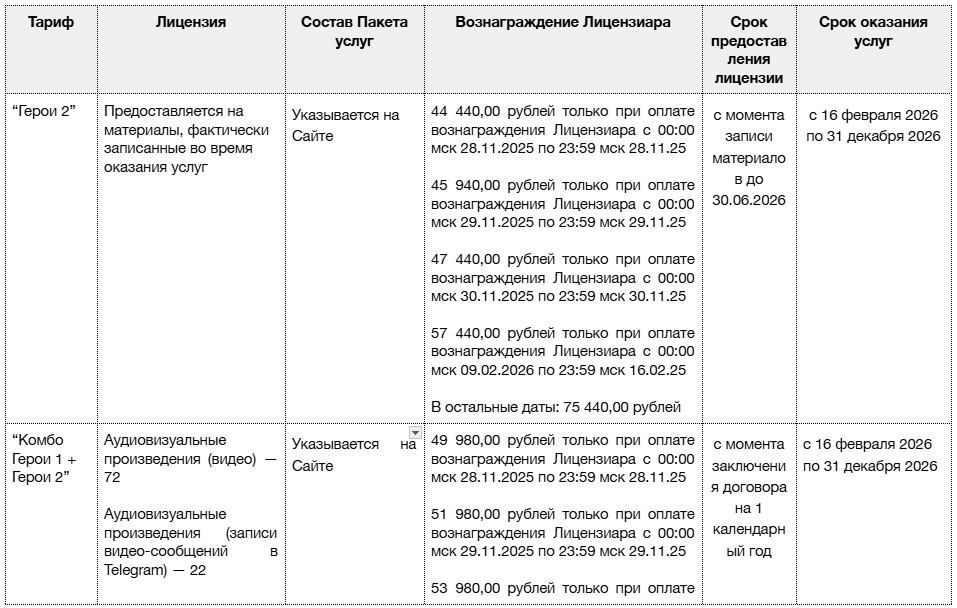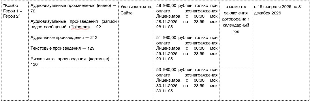 2.3. Размер вознаграждения Лицензиара по Договору распределяется следующим образом для программы “Комбо Герои 1 + Герои 2”: